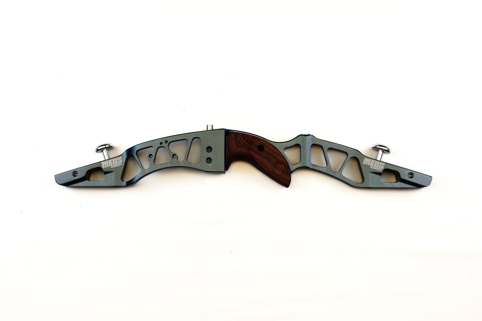 The 21" Kinetic Meos riser weighs only 1.98 pounds making it ideal for young archers or those with shorter draw lengths requiring shorter bows. CNC machined extrusion riser produced from 6063-T6 aluminum alloy. The Meos accepts International Fitting Limbs (ILF) and features a limb alignment system. An expanded range of colors is now available in RH and LH models.